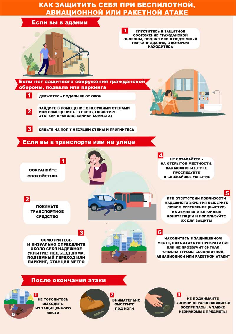 Памятки по действиям при возникновении опасности беспилотной, авиационной или ракетной атаки, катастрофического затопления, а также радиационного (химического) заражения